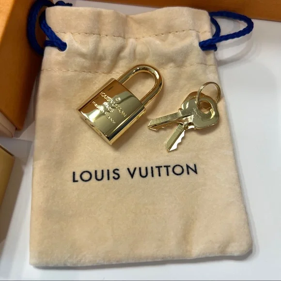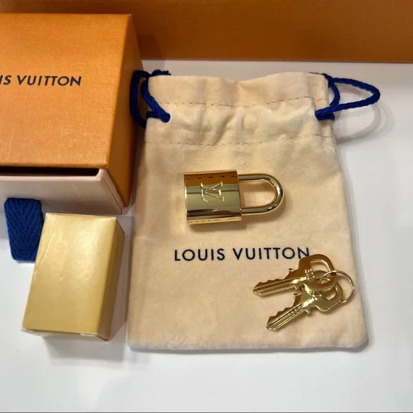 NIB Louis Vuitton Lock and 2 Keys Set #322Brand new, has never been usedAuthentic. From my Louis Vuitton Cannes You are receiving (all is pictured):1 LV Lock #3222 LV Keys #3221 LV Dust / Storage Box1 LV Dust / Storage BagYou can add chains to make these into necklaces or other accessories. Pet and smoke free home. No returns. Free gift with purchase!